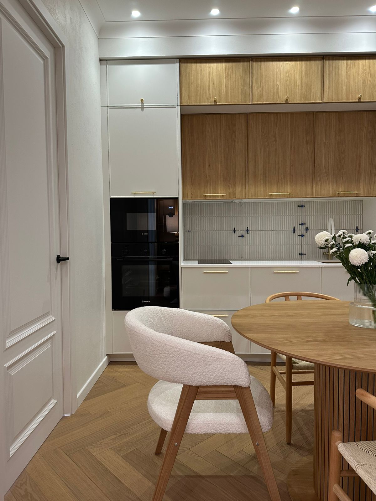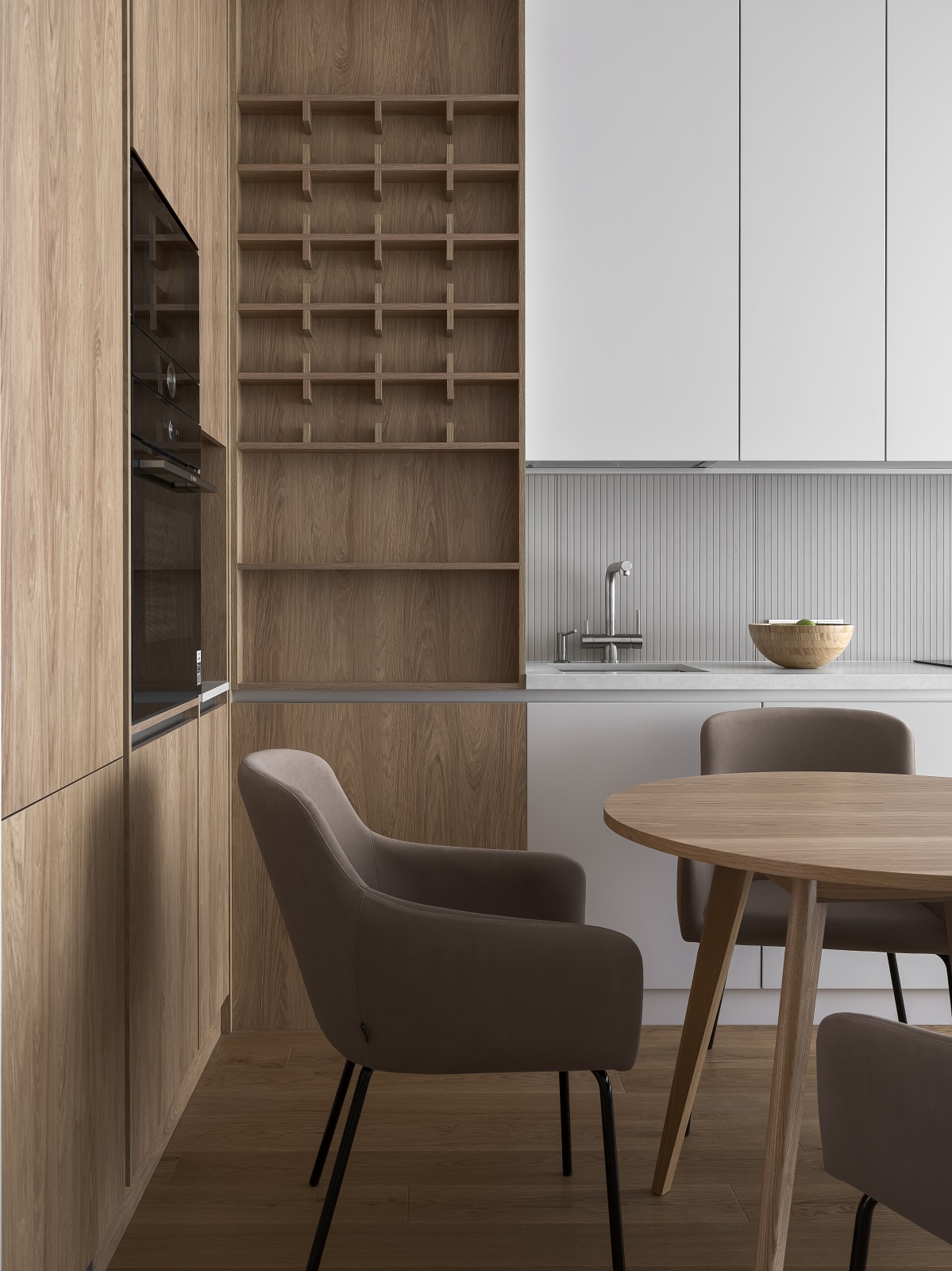Когда мы определили, какую будем устанавливать технику на кухню, то сразу поняли, какую часть пространства она уже забрала.