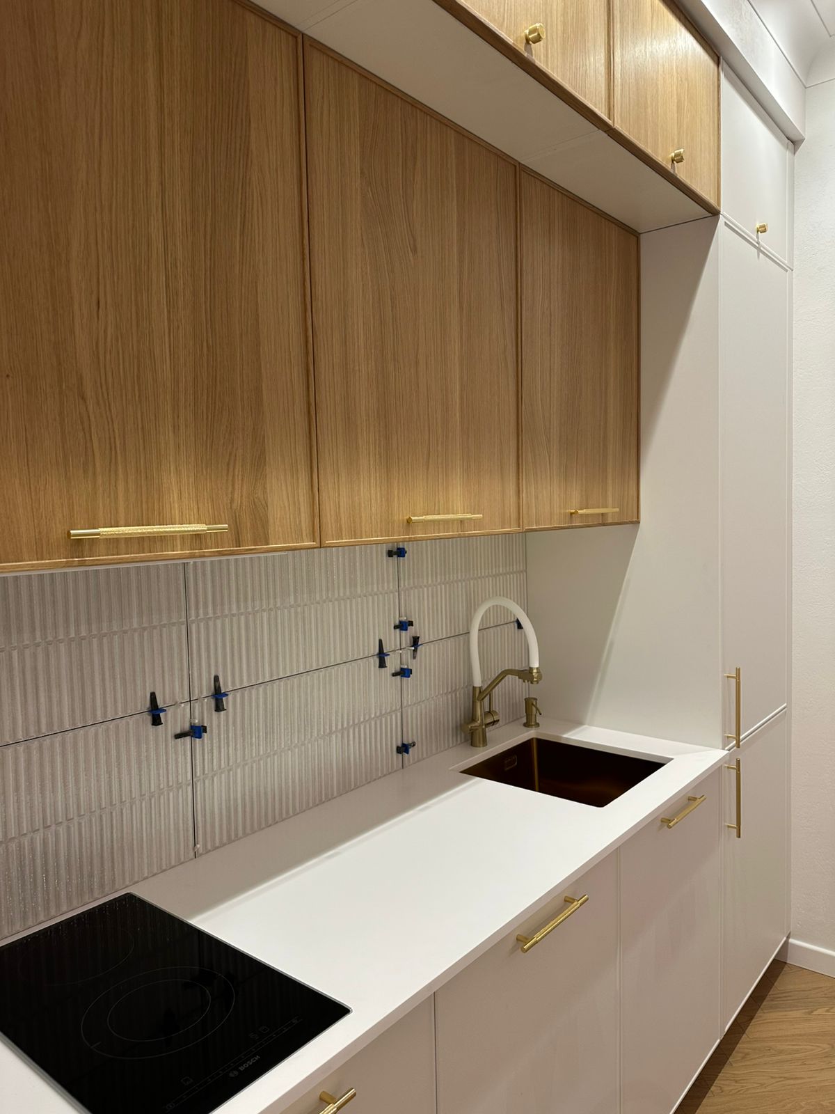 Внешний вид кухни, конечно, важен, но и не менее важен ее функционал. А функционал кухне придает эргономика расположения элементов и фурнитура, которая наполняет эту кухню. В своих проектах мы используем фурнитуру только известных и зарекомендовавших себя производителей: Blum, Hetich, Duslar, Haffele
